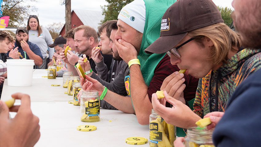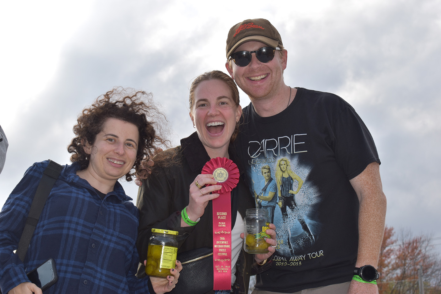 | Pickle Eating #1 Jozef Mravit, Jersey City NJ #2 Patrick Mott, Syracuse NY #3 Dawn Mott, Ballston Spa NY | Pickle Drinking #1 Brian Hoff, Wappingers Falls NY #2 Lorianna Fernandez, Staten Island NY #3 Eleanor Ahmed, Ballston Spa NY | Pickle Tossing #1 John Intrieri, New Paltz NY #2 Nicole Little #3 Tie: Amelia Gallagher, Katrina Thies, Jaliah Gallagher |