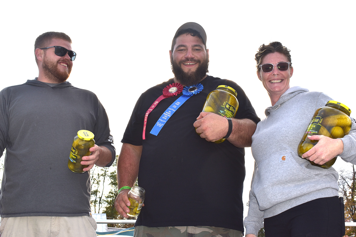 | PICKLE EATING 1st: Michael Perez, Maybrook, NY 2nd: Josh Bendell, Kerhonkson, NY 3rd: Akasha Finkle, New Paltz, NY KIDS DIVISION 1st: Jaxon O. age 11, Carmel, NY 2nd: John H. age 13, Sullivan County, NY 3rd: Aiden H. age 9, Sullivan County, NY | PICKLE JUICE DRINKING 1st: Lorianna Fernandez, Staten Island, NY 2nd: Ray Mathers, Long Island, NY 3rd: Harleen Saini, Clifton Park, NY | PICKLE TOSSING 1st: Tarin Diggle, Kerhonkson, NY Josh Bendell, Kerhonkson, NY Tim Diggle, Kerhonkson, NY 2nd: Kale Wortley, Hyde Park, NY Dave Lere, Hyde Park, NY Jen Endich, New York, NY 3rd: Maddy Finelli, Bellmore, NY Izzy Schuyler, New Paltz, NY Julie Penninpede, Bellmore, NY |