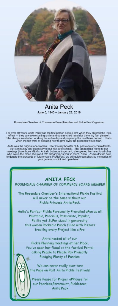 - Anita Williams Peck, (R.I.P.) Pickle Fest Voice of Reason